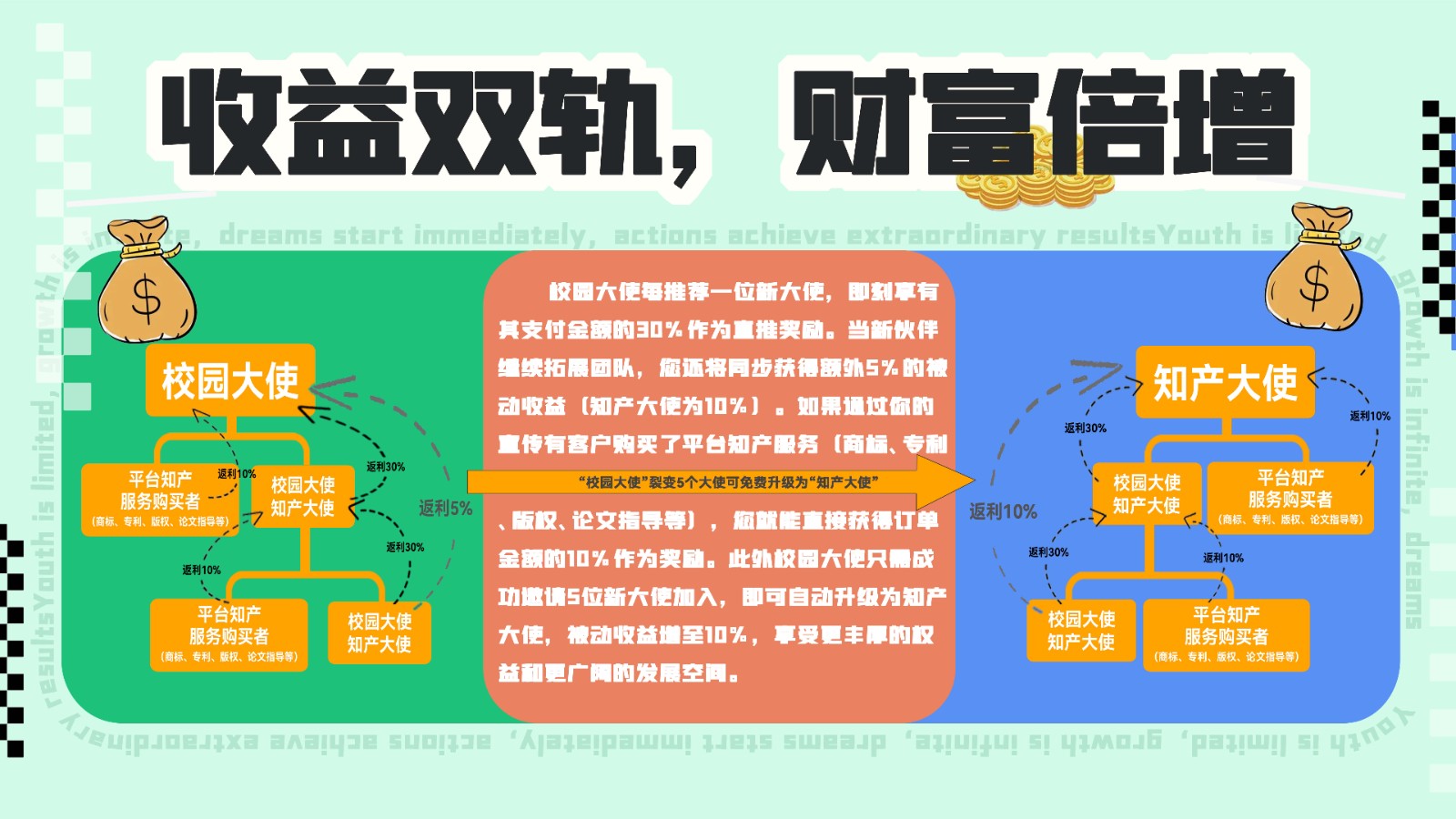 几张图带你了解校园大使与知产大使的区别,以及怎么成为大使,绑定身份,获取收益!