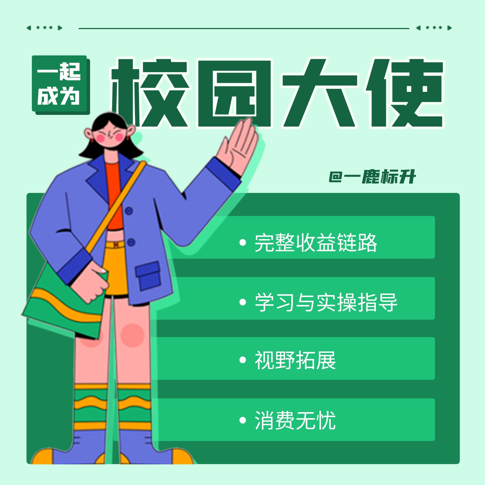 扫描二维码进入“一鹿标升”小程序,点击成为大使-----下单获得门槛-----申请成为大使-----等待审核-----审核通过----绑定大使身份----获得收益!(由于申请大使人数较多,工作人员会在每晚十点进行统一审核,望各位大使们谅解,我们会以最快的速度加急审核。)
