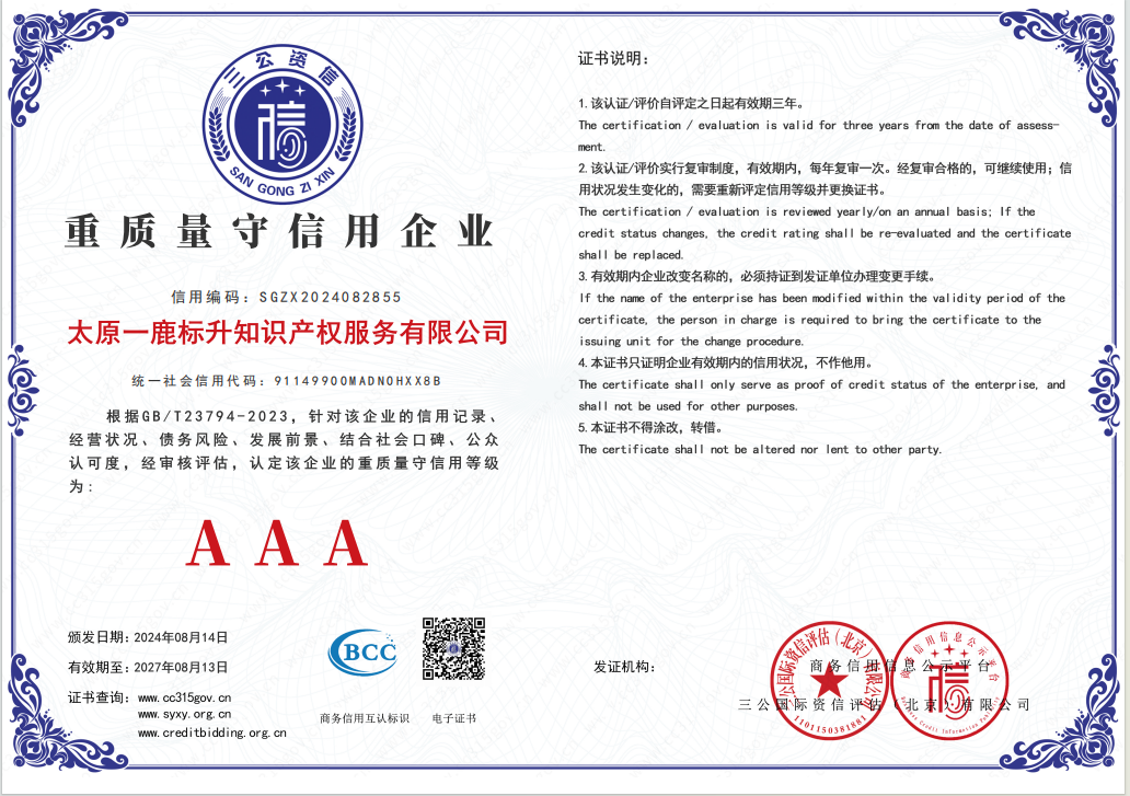一鹿标升知识产权服务有限公司总部位于山西太原市,是一家集专业与创新于一体的一站式知识产权服务机构,现子公司覆盖太原、广州、上海、成都等国内重点城市,团队规模超千人,服务客户人次10w+,优秀案例500+,团队深耕行业近十年,精益求精,久久为功,深受业内赞誉和客户信赖。
